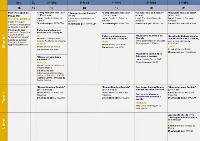 No âmbito do I Fórum Internacional de Violência e Maus-Tratos (FIVMT), organizado pela Escola Superior de Enfermagem da Universidade de Évora, que decorreu de 2 a 5 de setembro de 2014, a CPCJ de Évora, através de um convite feito aos membros da RIIDE, elaborou um cartaz com o intuito de estar representada durante o Fórum.